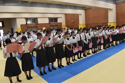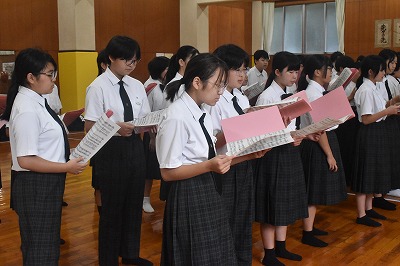 今日は、朝の時間に全校合唱練習を行いました。全校合唱「南風」は、これまで、南部中が伝統的に歌い続けてきた大切な曲です。歌詞の意味や、歌い続けてきた意味を、3年生の合唱リーダーが後輩に伝え続けてきたことによって、今でも歌い継がれています。今年はどんな「南風」が完成するのか楽しみです。