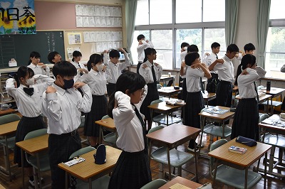 2025年10月15日 17時00分 南中祭を終え、先週末まで校内に掲示されていたポスターや飾りつけはすっかり片づけられ、落ち着いた雰囲気の中、朝の会が始まりました。さすが南中生、気持ちの切り替えがしっかりできています。