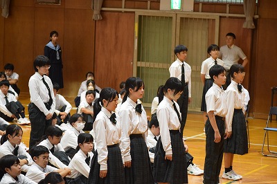 2025年10月16日 18時10分 今日は、全校集会で後期委員長と副委員長の任命式がありました。新しいリーダーが決まったことで、また新たな気持ちで学級や委員会を進められるとよいと思います。これまでの南中に磨きをかけ、よりよい南中をつくっていきましょう。