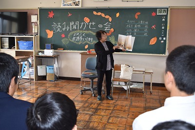 2025年10月21日 17時00分 今日は、幸田町図書館から館長様をはじめ4名のかたにお越しいただき、本の読み聞かせをしていただきました。家族や友達の大切さや、自然がつくり出す美しさなど、改めて考え直すきっかけを与えていただきました。もし、興味をもった話があったなら、その本に関連した本を図書館で借りてみてはどうでしょうか。