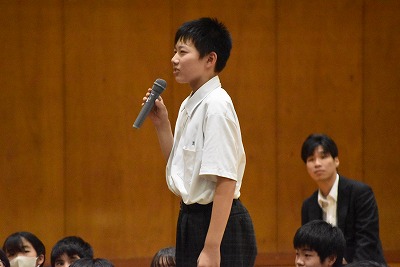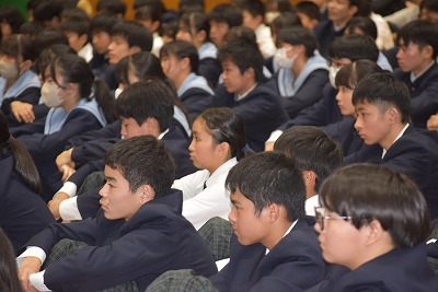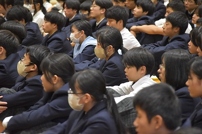 2025年10月30日 17時00分 今日は、1年3組に不審者が侵入したという想定で、不審者避難訓練を実施しました。生徒らは速やかに体育館に避難することができました。不審者が教室に侵入した際は、不審者を教室から外に出さないことや、不審者が持つ刃物を早めに叩き落すことなどを岡崎警察署のかたから教えていただきました。生徒は、自分の身は自分で守ることを心がけるようにご指導いただきました。