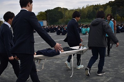 生徒1名が行方不明という想定で救護訓練を行いました。
