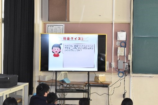 2026年1月28日 17時00分本日、3年生を対象に租税教室が開かれました。講師の税理士の方が、税の種類や集められ方、使われ方について分かりやすく解説してくださいました。また、税金クイズも用意してくださり、子どもたちは楽しく学ぶことができました。