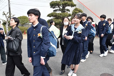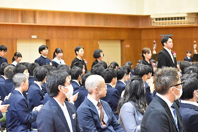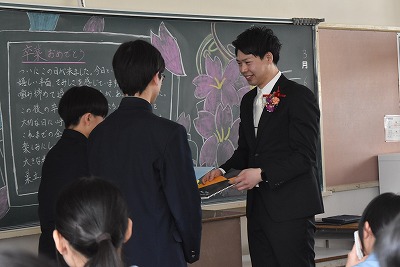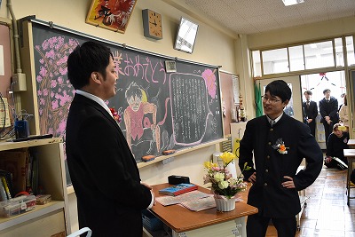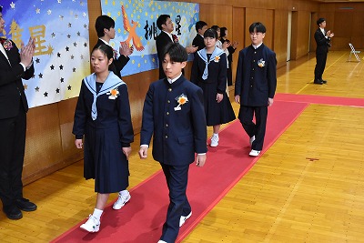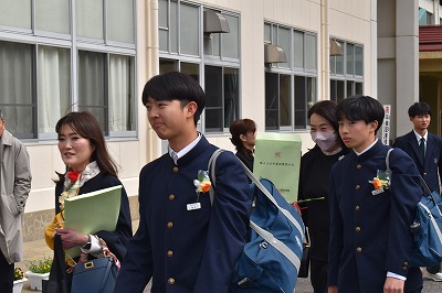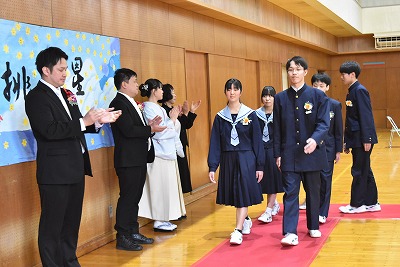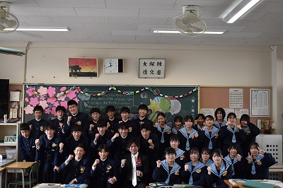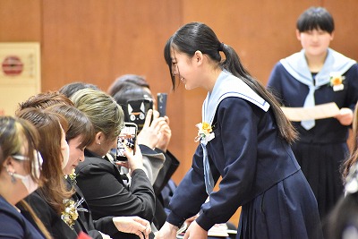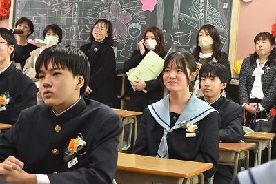 最後の学活が終わると、歓送の会で卒業生を見送りました。卒業生と在校生が声を掛けあいながら、別れを惜しんでいました。南部中学校の3年間で学んだことを、これからも大切にしてほしいと思います。