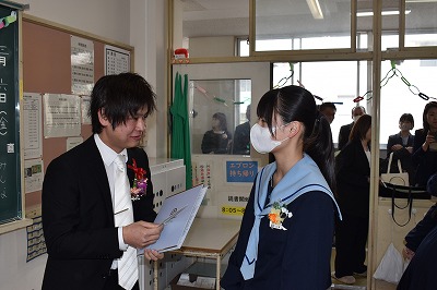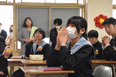 卒業式後は、各学級で最後の学活を行いました。今年度1年間の思い出を振り返る映像を見たり、一人一人が感謝の思いを伝え合ったりして、心温まる時間となりました。